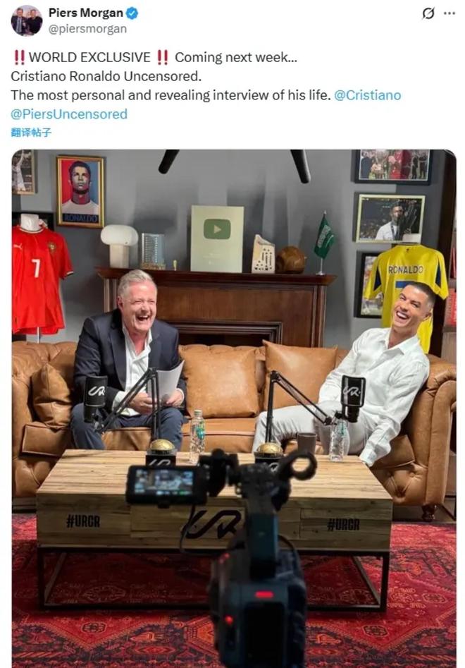 北京时间2025年10月30日消息。劲爆的消息:知名足球主持人皮尔斯·摩根,在个人社交平台上晒出一条消息:下个星期,我将公布C罗的专访,并且是全球的独家,且是无删减,最私密和坦诚的专访。——这个消息一出,无疑是吊足了球迷的胃口,大家拭目以待。